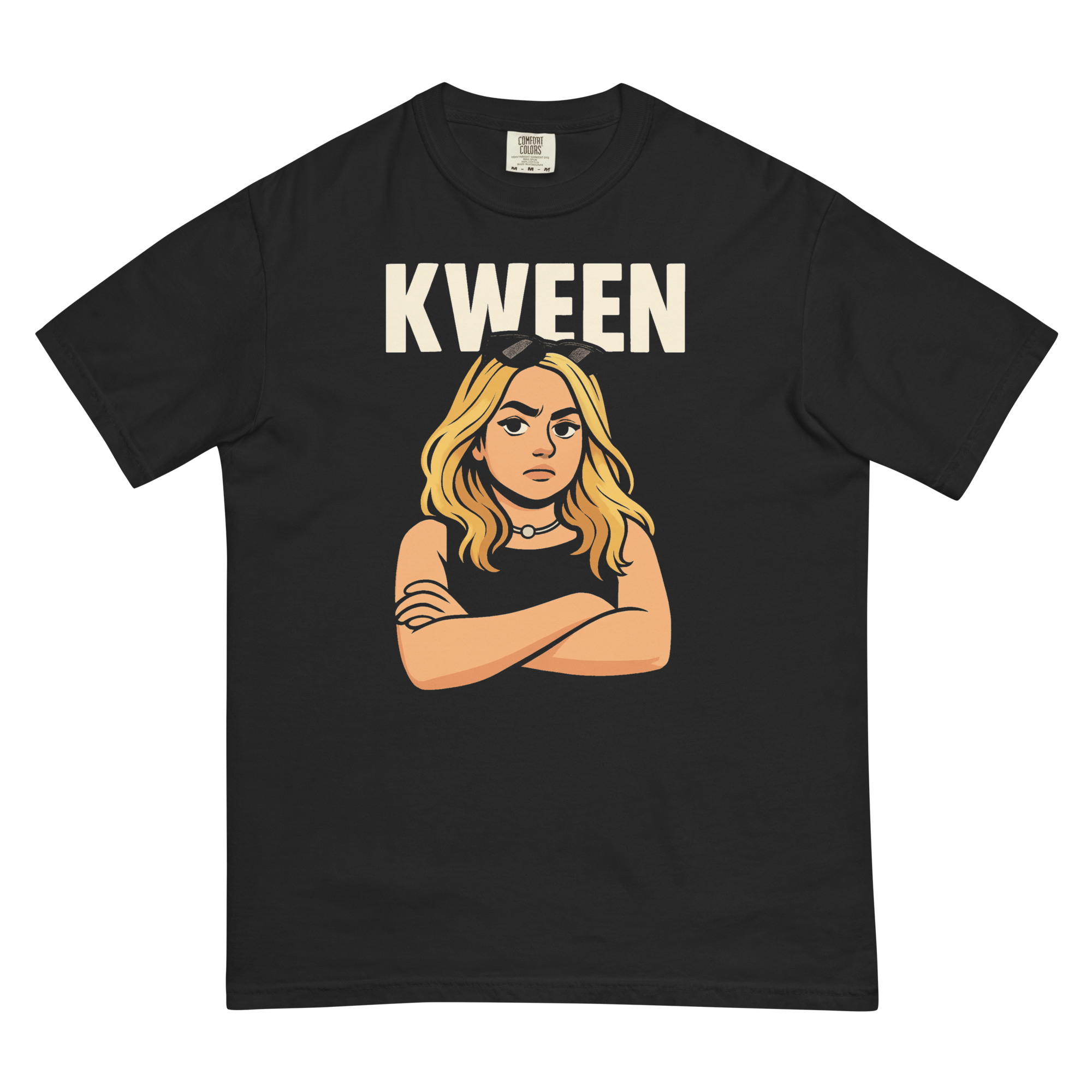 Step into your power with the KWEEN graphic tee — a bold-lined, smooth-animated illustration that radiates confidence and attitude. Featuring a striking design of a strong, self-assured woman with arms crossed and a fierce gaze, this shirt captures unapologetic independence in a clean, vintage-inspired aesthetic.